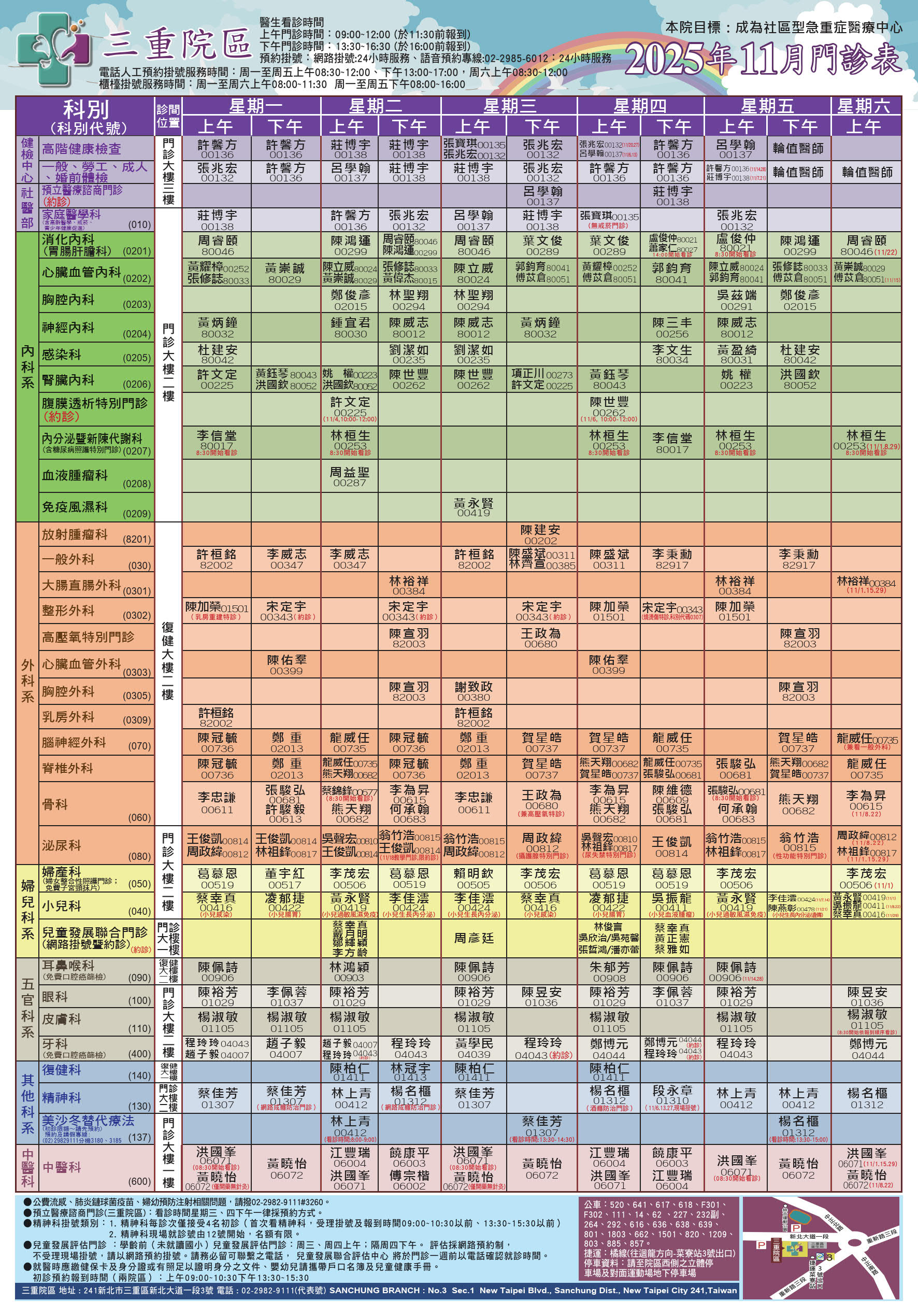 11 月門診表 (三重院區)