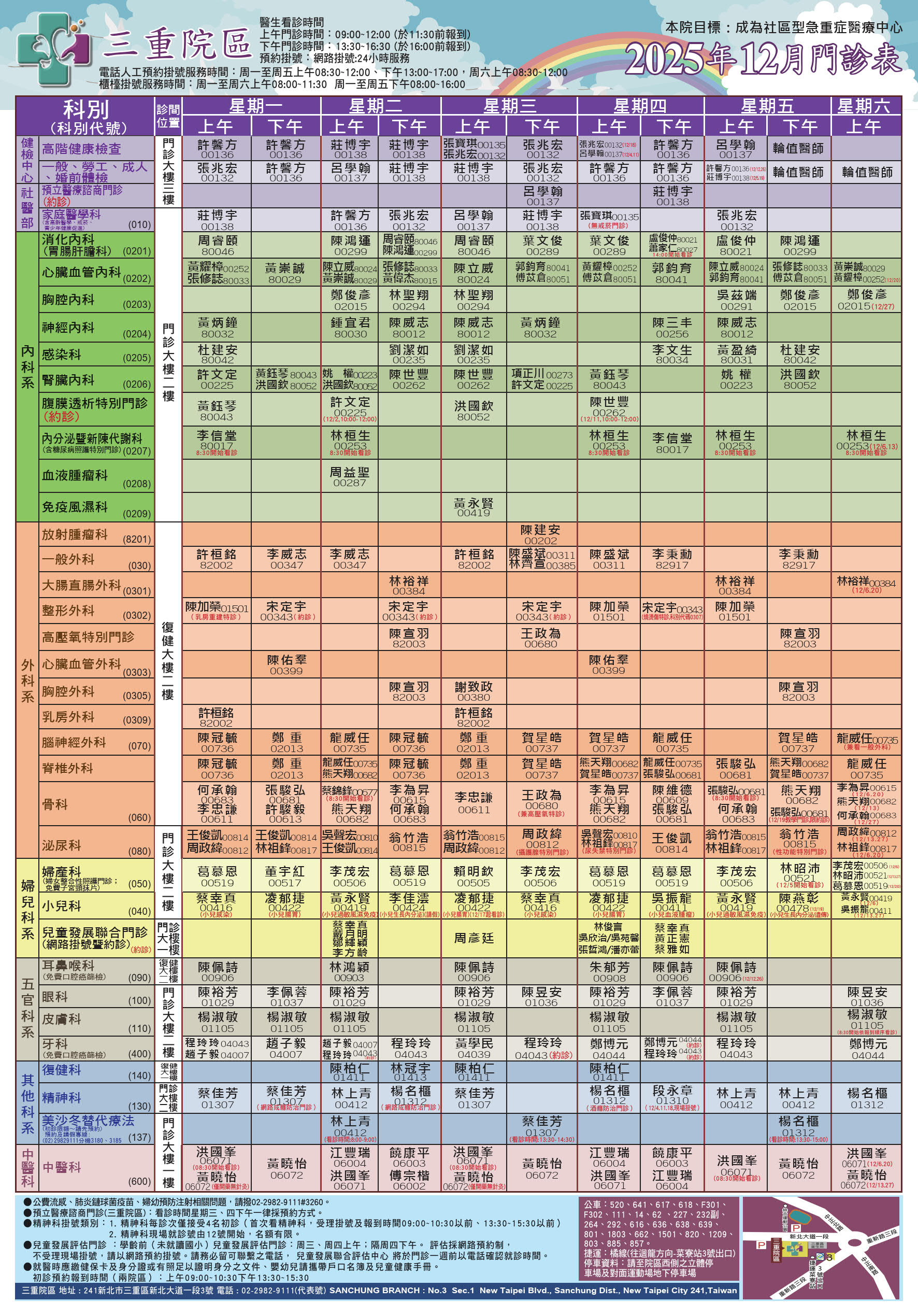 12 月門診表 (三重院區)