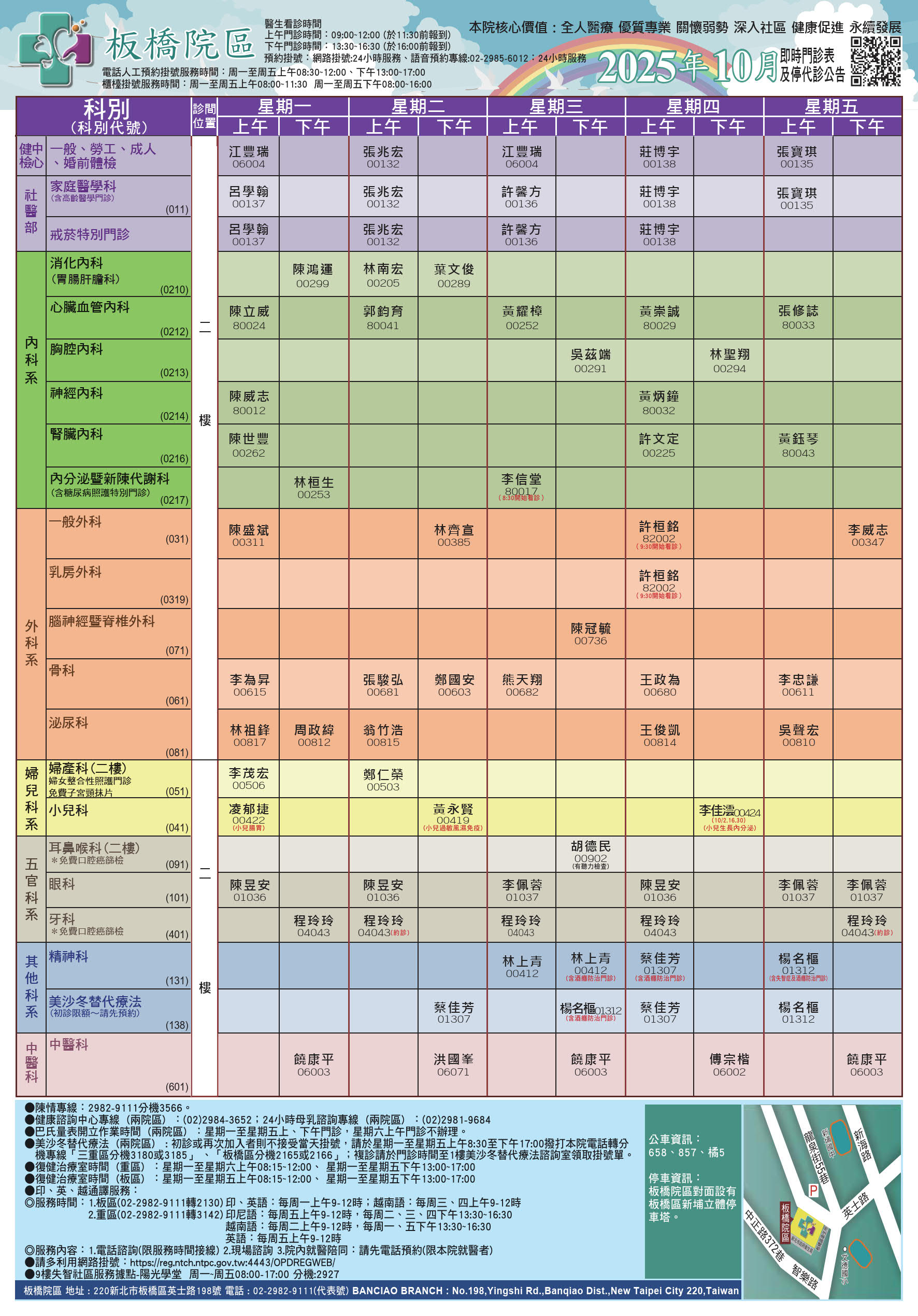 10 月門診表 (板橋院區)